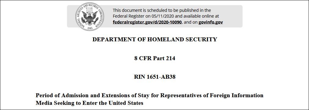 《聯(lián)邦公報》,是美國聯(lián)邦政府的政府公報,其內容可概分為美國聯(lián)邦機構的規則,及擬議中的規則與公告。觀(guān)察者網(wǎng)查閱公告內容后發(fā)現,針對中國記者簽證的限制規定計劃將于11日正式發(fā)表,現在仍處于公眾審閱(Public Inspection)階段。